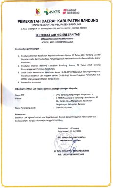 KAB. BANDUNG | MPNews – “Anak-anak di sini seperti keluarga kami sendiri; kami ingin mereka makan dengan aman dan sehat.” Prinsip sederhana namun sarat makna inilah yang menjadi landasan perjuangan Dapur Satuan Pemberi Makanan Gizi (SPPG) Margamukti 3. Kini, dedikasi itu membuahkan hasil nyata: tim berhasil meraih Sertifikat Laik Higiene Sanitasi dari Dinas Kesehatan Kabupaten Bandung, menjadi bukti bahwa makanan sehat untuk generasi penerus dimulai dari dapur yang terjaga kebersihannya.